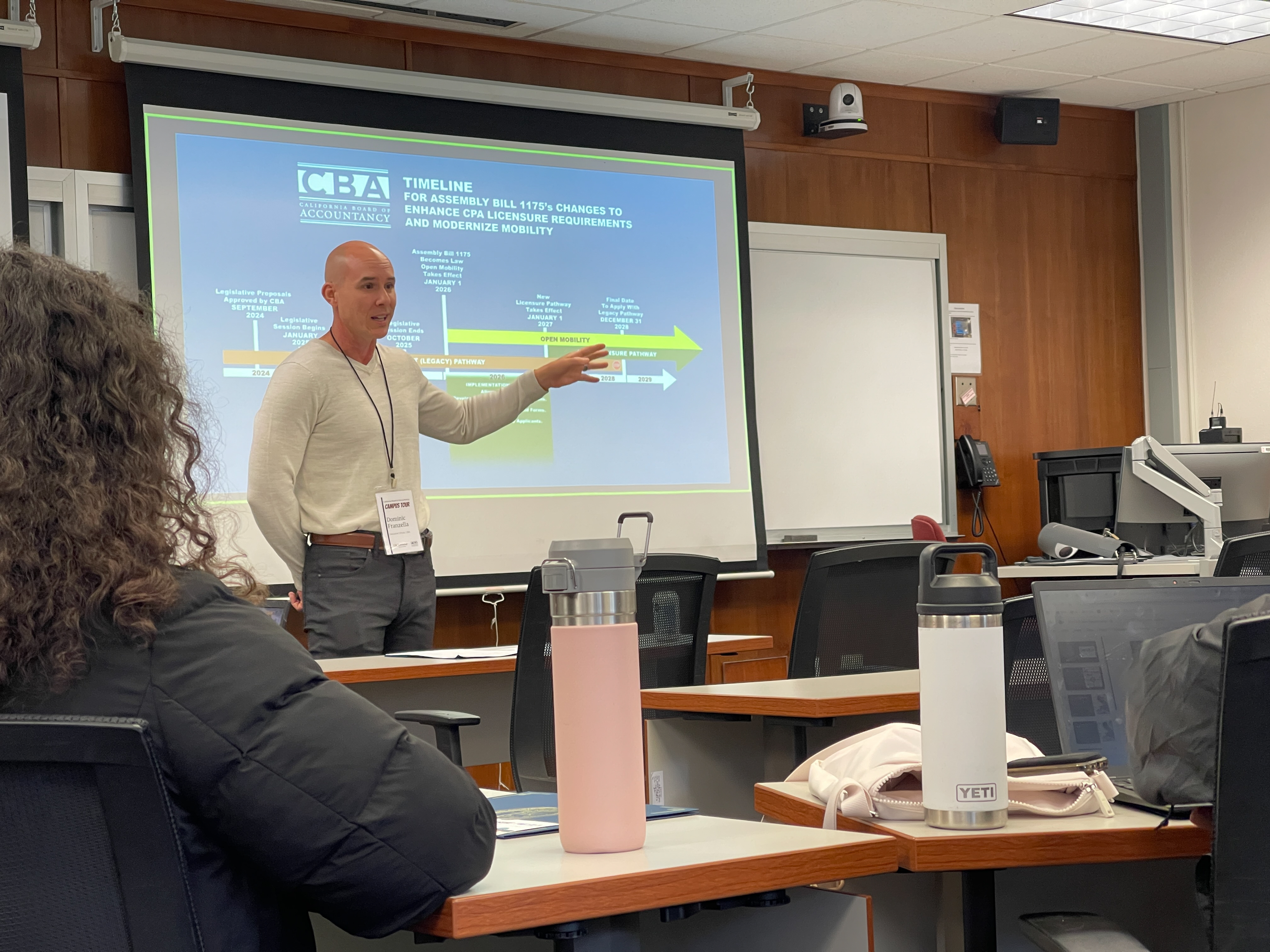 Now that Assembly Bill (AB) 1175 has made it through the legislative process and has been signed into law by the Governor, new educational and experience requirements are set to debut on January 1, 2027. These updates aim to give students a clearer, more flexible path to CPA licensure. The CBA wants to ensure aspiring CPAs get their questions about AB 1175 answered directly by CBA members and staff! The goal of the Campus Tour is to equip students with important information to help them make informed choices as they navigate the path to licensure, while ensuring faculty have the resources to properly guide their students. For more information about the changes themselves, please visit our AB 1175 webpage.